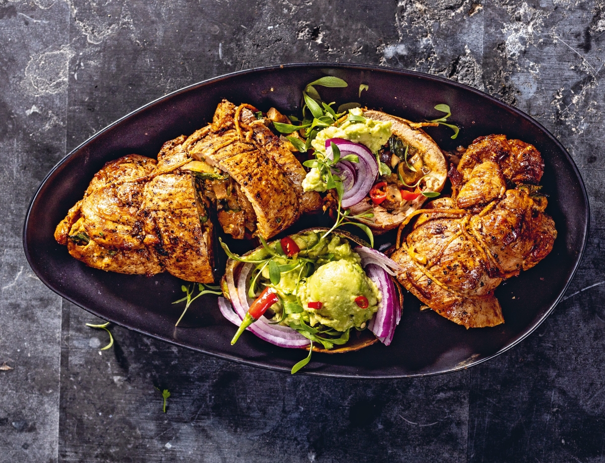 There’s nothing quite like the smell of a stuffed pork fillet sizzling over the coals. This recipe takes braaiing to the next level – juicy pork rolled with a smoky, spiced mushroom-and-spinach filling, then flame-kissed until golden and tender. Served with creamy homemade guacamole, it’s a showstopper for your next gathering, proving that the braai isn’t just for chops and wors. With a little prep and a lot of flavour, this dish brings fire, flair, and a touch of indulgence to the grid.