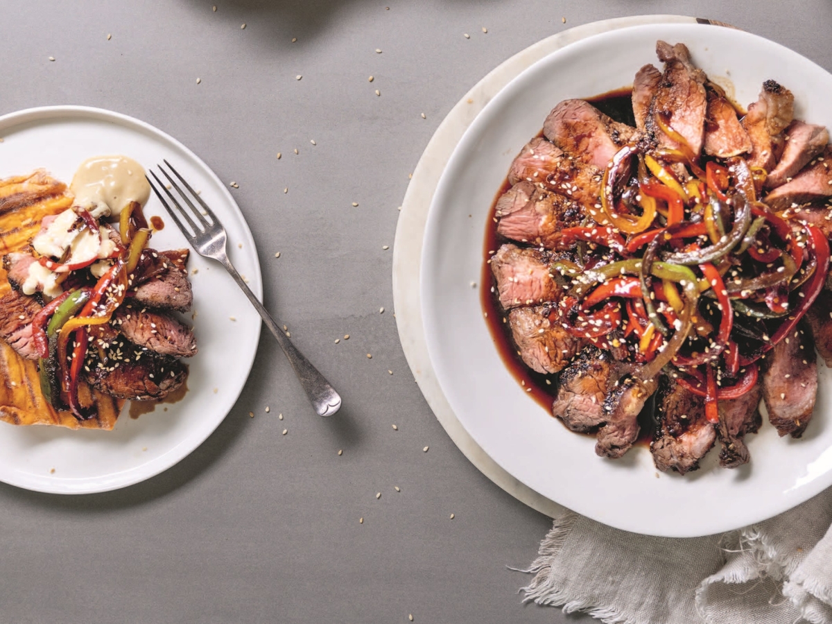 Fire up the braai and get ready to impress with this Teriyaki Platter. Steak is marinated in a rich soy, balsamic, honey, garlic and ginger blend, then seared to smoky perfection over the coals. Sliced and topped with caramelised sesame peppers, it’s served alongside sundried tomato flatbreads and a creamy tahini dressing. Bursting with flavour and colour, this is a true crowd-pleaser – perfect for relaxed outdoor entertaining where the braai does most of the work.