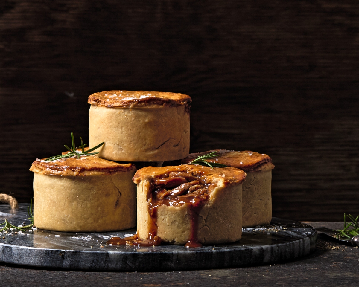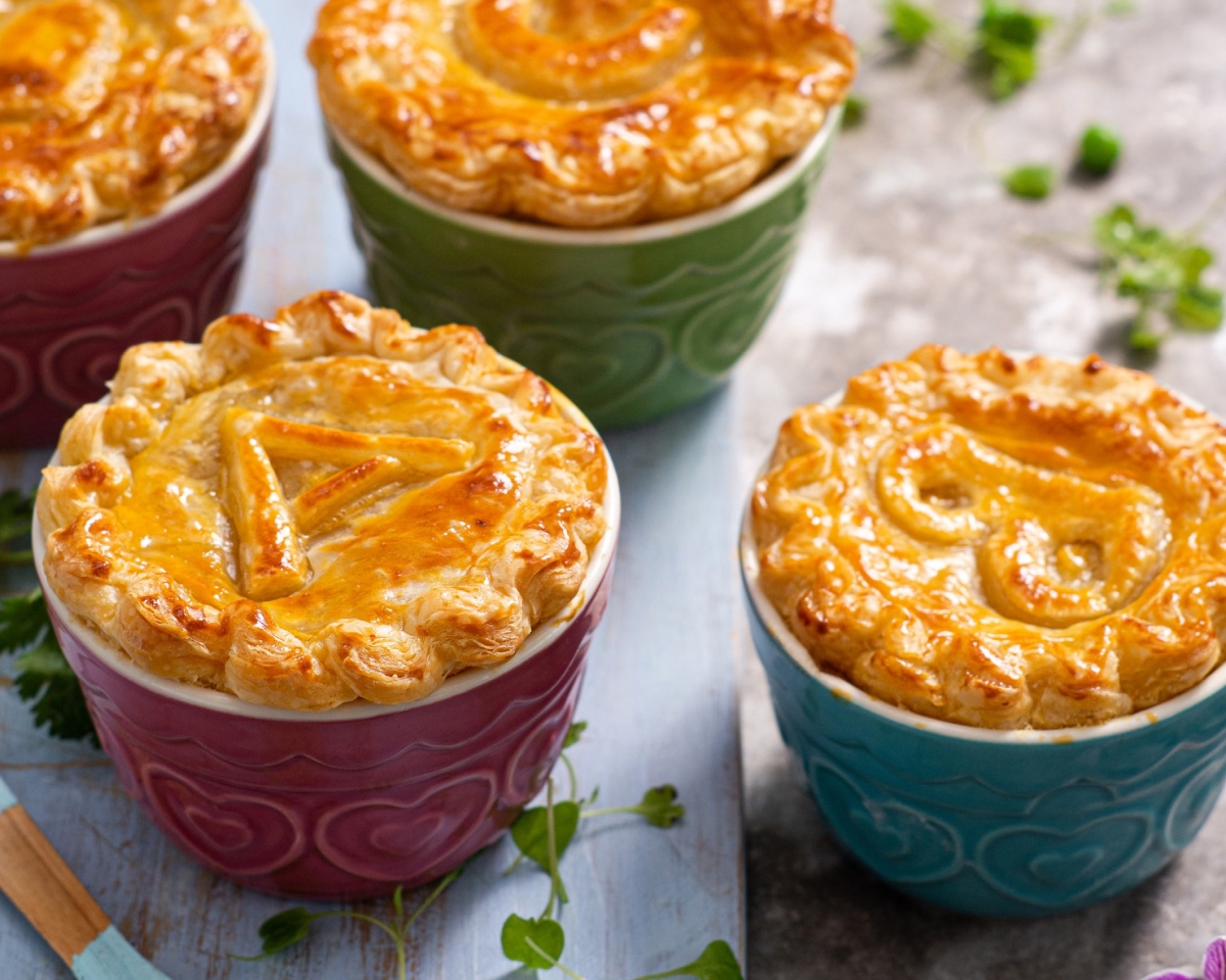 “Made as one big pie or mini single-serving pies, these are hearty and full of flavour. A delicious dinner or picnic addition.”
